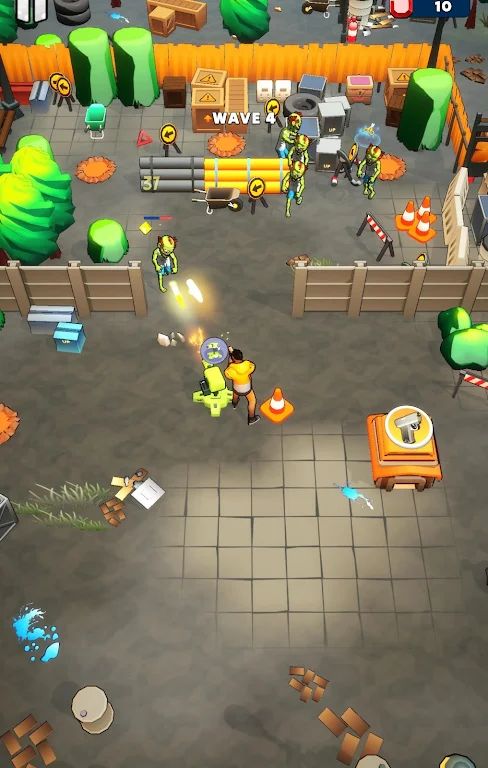 战斗系统:夜晚玩家需坚守阵地应对敌人潮水般的进攻。游戏拥有快节奏的放置战斗机制,支持自动攻击与手动射击的自由切换。敌人采用波次进攻机制,战斗节奏逐步提升,玩家需要根据不同敌人类型调整武器配置,关键时刻使用特殊技能逆转局势。