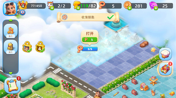 解锁新地区:当玩家提升等级后会解锁新的地区,消耗钥匙可以驱散云雾,进而合并更多物品。