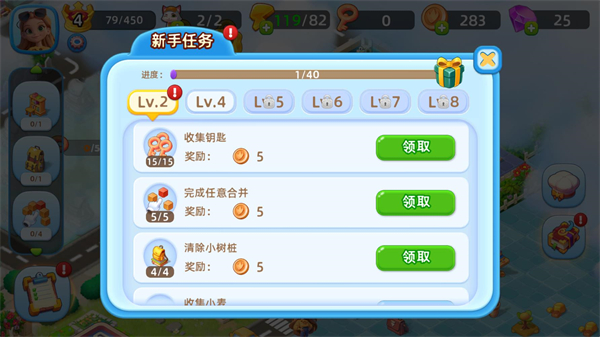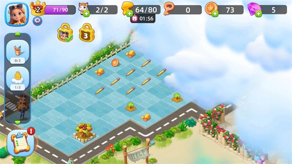 查看并完成任务:点击左下角的图标,可以查看当前的任务,完成这些任务能获得丰富的奖励,不断合并更多物品来解锁新的区域,完成各种挑战以建设完美城市。