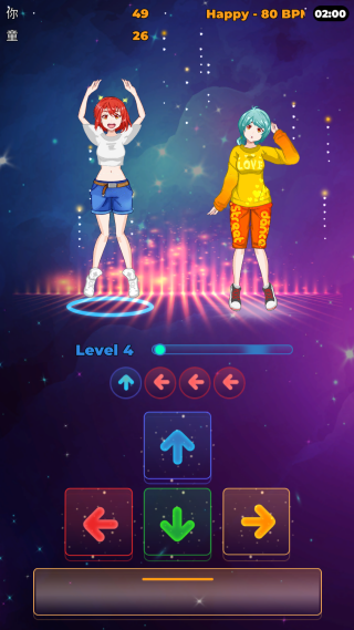 3、角色动作与音乐节拍深度绑定,不同难度下舞步复杂度递增,强化了节奏代入感,让玩家仿佛置身于真实的舞厅之中。