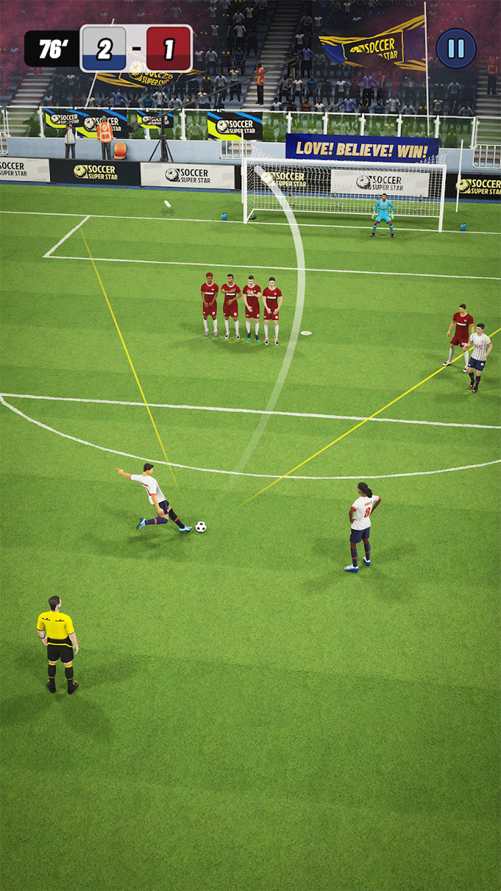画面与物理引擎:采用 3D 引擎与高级 AI 技术,模拟真实比赛场景,球员模型、球场等都制作精良。同时,真实物理引擎还原了真实足球碰撞与弧线射门轨迹,带来极具代入感的比赛体验。