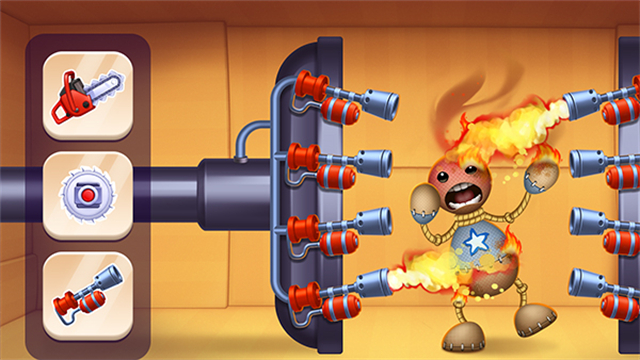 疯狂木偶人(Kick The Buddy)是一款休闲益智类的解压游戏。进入游戏后,玩家会看到一个木偶人,目标就是通过各种方式攻击它。玩家可以用手指直接点击木偶人进行打击,也可以使用游戏提供的各种武器和道具,如手榴弹、散弹枪、斧头、核弹等。不同的武器有独特的伤害效果,打击木偶人不同部位获得的金币也不同,击中要害能获得更多金币。此外,玩家还可以拖动木偶人的身体部位进行宣泄,甚至将其丢进垃圾桶。