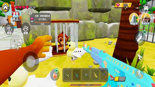 3、寻找所有猴子的位置,制定合适的救援计划,在救援过程中使用武器保护自己。