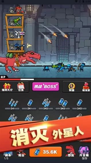 一款自由组装的横版射击闯关游戏,能够将各种装备装置在恐龙身上,背上大炮来前进突破,不畏惧任何的敌人,用精确的打击来消灭所有的外星机甲敌人吧。是一款非常有趣的策略塔防类手游,该游戏主要就是以恐龙为主,并整个游戏的画风以清新可爱的卡通风为主,为玩家带来真实的打击爽快感。