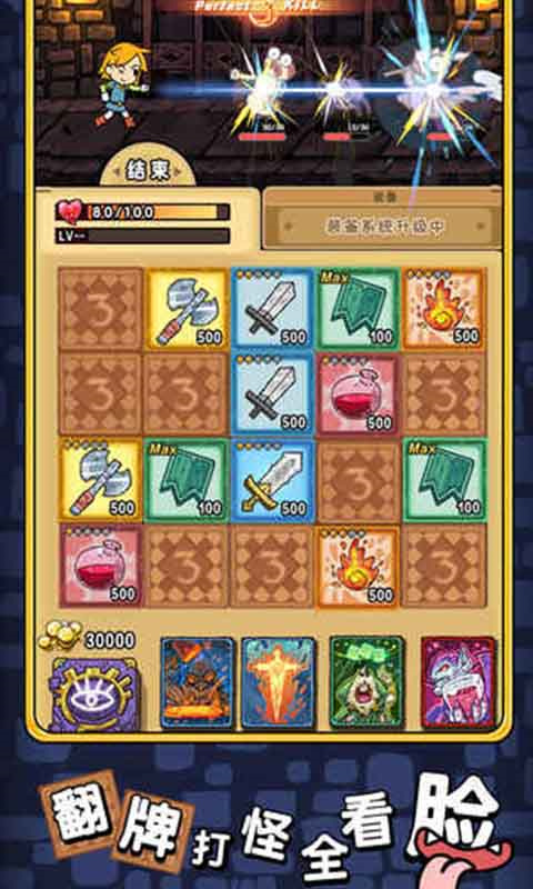 4、翻牌打怪全看脸;所以要分配道具武器,深入地牢。