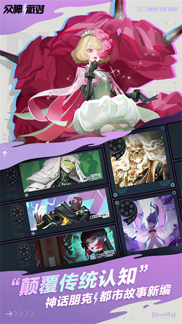 神话朋克美术风格:采用融合酸性美学与波普风的设计,打造出明亮前卫的近未来都市,如霓虹闪烁的街头市集、科技感十足的神迹遗址等。角色源自全球神话体系,经现代化重构极具辨识度,如北欧雷神索尔穿着潮流夹克与牛仔裤,雷神锤点缀电子纹路。