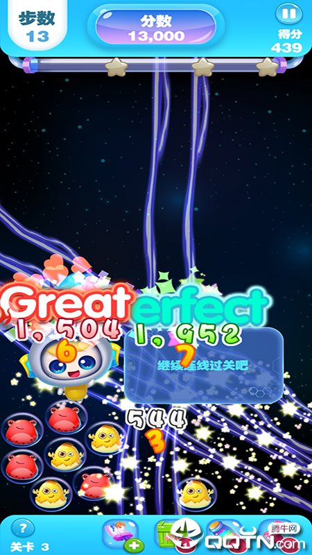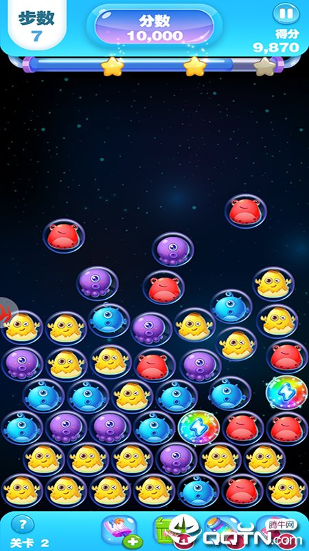 选择开启的游戏关卡进入消除画面,每个关卡都有独特的目标和挑战。游戏中点击屏幕滑动来变换各种元素的位置,灵活运用策略才能获得高分。三个以上相同颜色的物品就可以消除,连续消除还能触发连锁反应。界面下方的道具点击使用!合理使用道具可以帮助你轻松通关,比如炸弹可以清除周围元素,彩虹道具可以匹配任意颜色。