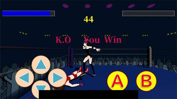 角色选择与操作:游戏中有六名特色各异的格斗家供玩家选择,她们的设计融合了机车、忍者、偶像等流行元素。玩家通过左侧方向键控制角色移动,点击右侧的【A】或【B】按钮发动攻击。