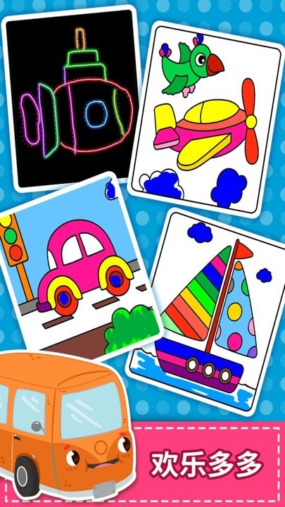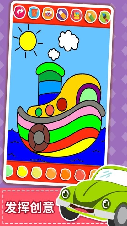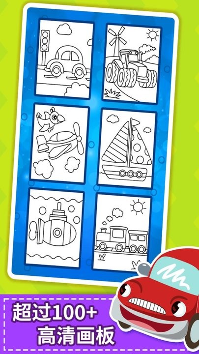应用主题充满正能量,操作简易,场景明亮,娱乐性强,让孩子在快乐中学习成长。汽车画画涂色是一个非常适合0-8岁的幼儿和儿童的类应用,界面设计符合儿童使用习惯。48张底图随意涂色绘画,图案丰富久玩不厌,定期更新更多有趣图案。让儿童宝宝王子公主们在充满的氛围中认识各种不同的汽车和颜色,潜移默化地学习知识。轻松休闲的玩法设计,玩家可以随时随地的进行游戏,没有任何的限制,适合碎片化时间玩耍。培养孩子画画的上好工具,带宝宝进入涂色秘密花园,激发艺术潜能。满足儿童涂色、宝宝画画、宝宝学颜色、随意涂鸦全方位需求,一站式解决早教需求。通过标准的英文发音锻炼外语发音能力,小朋友们创作的作品还能保存到手机里或者分享给好伙伴,实现双语启蒙教育。