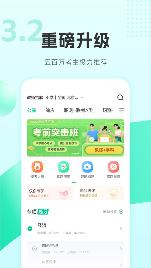 根据考生情况分类筛选,制定有针对性的备考方案!平台采用大数据分析技术,精准识别用户薄弱环节,智能推送适合的学习内容。针对不同考试类型和学段特点,提供差异化的备考策略。