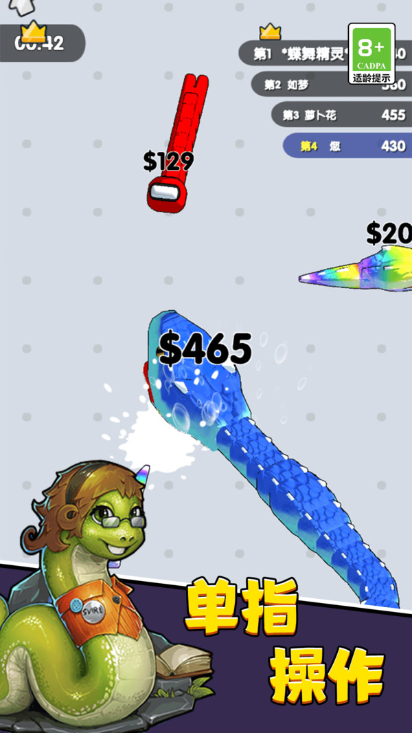 3.长按加速键,用巧妙的走位让蛇身被别人撞上,就可以吃掉尸体迅速变长。