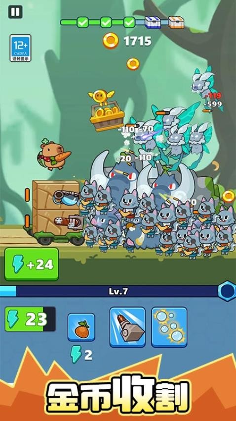 3、升级可以使用的武器,利用这些装备变强,金币可以存起来哦。
