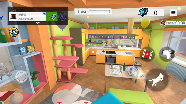 任务与探索结合:屏幕左上角会显示当前任务目标,既有帮奶奶找钥匙这类温馨主线任务,也有 30 秒内打翻 5 个杯子的趣味隐藏任务。完成任务可获得小鱼干和经验值,还能解锁阁楼等新区域。探索过程中,玩家能钻床底、翻沙发,和鱼缸里的金鱼、庭院的蝴蝶等互动,几乎所有家具都能触发互动动作。