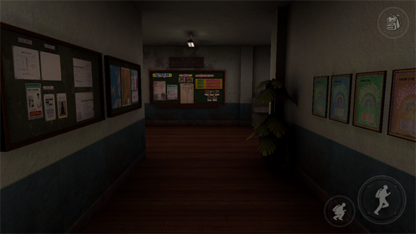 游戏采用全 3D 建模打造阴森校园场景,阴暗的走廊、空旷的教室、布满灰尘的储物柜等细节,搭配动态光影效果,让废弃校园的诡异感扑面而来。同时环绕式音效极具代入感,脚步声、门响声、鬼魂的低语声等,每一种声音都精准烘托紧张氛围。此外游戏以第一人称视角呈现,奔跑时的摇晃镜头效果,更让玩家仿佛亲身置身于恐怖校园之中,胆小玩家很容易被突然出现的恐怖元素吓到。
