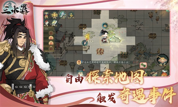 2、自由探索江湖地图,随机触发神秘事件与支线任务。