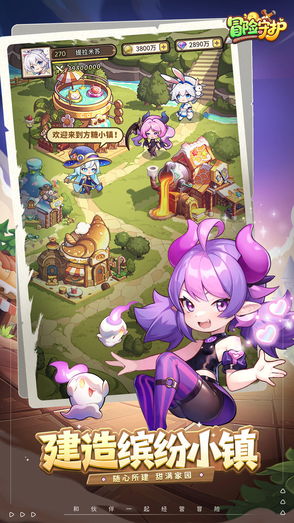 冒险守护是一款融合模拟经营与策略卡牌的治愈系手游,游戏以糖果奇幻世界为背景,玩家将以镇长身份重建破败小镇,同时组队抵御暗影势力,核心玩法兼顾建造乐趣与策略对战。