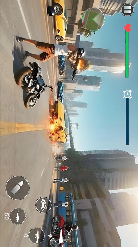 城市侠盗冒险是一款全新推出的城市冒险手游,这里包含诸多的武器载具可以自由使用到,要完成特定的各种作战和驾驶任务,得到相应的奖励,在城市内自由穿梭,感受特色的剧情彩蛋故事,要时刻确保好自己的生命值哦,有着补给品可以补充能量!