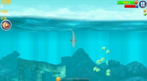 4、游戏玩法非常简单。玩家只需使用重力感应并触摸屏幕,就可以控制饥饿的鲨鱼横扫水下世界。
