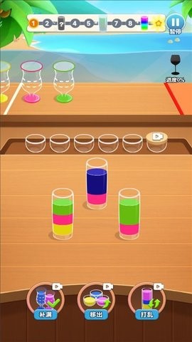游戏完美传承了经典的倒水排序玩法,操作简单直观,趣味性十足,无论是小朋友还是成年人都能轻松上手。关卡设计丰富多样,从基础入门到高阶挑战,难度曲线合理平滑,能够满足不同水平玩家的需求。画面风格清新明快,色彩运用大胆鲜明,视觉效果舒适养眼,让玩家能够完全沉浸在游戏的欢乐氛围中。