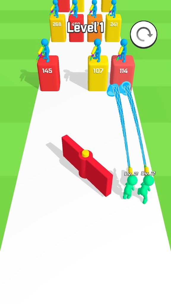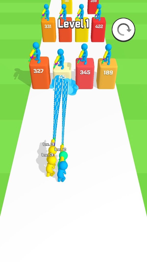 游戏的核心玩法是使用水枪射击摧毁敌方防御塔,同时收集金币来扩充你的战斗队伍。随着关卡推进,你会遇到各种创意十足的障碍物和机关陷阱。游戏特别设计了帮派合并系统,你的队伍规模越大,造成的破坏力就越惊人。每个关卡都设有三星评价机制,想要获得完美通关需要合理运用战术策略。