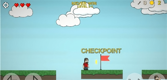 永远不会赢(Never Win)是一款非常精彩的休闲闯关游戏,在这里你将控制小人来完成很多精彩的解谜跳跃闯关,感受到很多不一样的内容,而且玩法非常的丰富,喜欢的话快来下载进行体验吧!