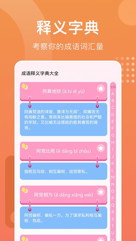 成语进宝是一款非常精彩的休闲益智游戏,这款游戏以成语解谜为主要玩法,你将在这里开启各种学习生涯,还可以感受到游戏带给你的乐趣,更有超多红包赠送给大家,喜欢的话快来下载进行体验吧!