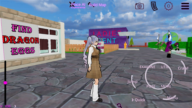 游戏拥有丰富的场景,包括教学楼、操场、泳池、后山等,玩家可以自由漫游。