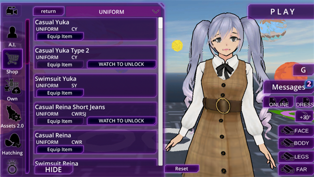 女子高中生沙盒(School Girl AI 3D Multiplayer Sandbox Simulator)是一款由 Kurenai Games 开发的动漫沙盒角色扮演手游。玩家将扮演女高中生,在开放式的 3D 校园中自由探索,可与 NPC 及联机玩家互动,参与各种课程和活动。还能通过点击 “Shop” 进入换装界面,挑选心仪的服装为角色换装。