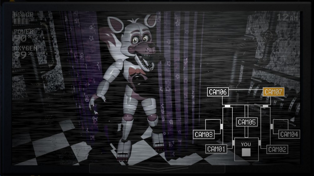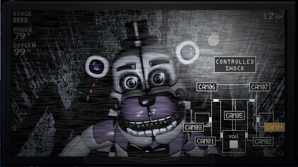 特殊干扰角色:除了常规追击角色,还有不少干扰型角色。像随机刷新在监控左上角的钓鱼老头,玩家若不完成其对应的像素小游戏,监控会崩溃一段时间;电话男会频繁打电话制造噪音,还会吸引其他人偶,玩家需及时挂断电话避免危险。此外还有黄金弗雷迪、暗影邦尼等隐藏角色,触发后会有特殊恐怖效果,例如暗影邦尼会将保安室染黑且无法防御。