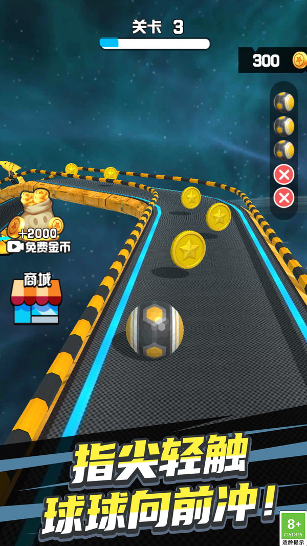 3、尽力收集沿途星星,用于解锁更多具有不同特效的弹珠皮肤。