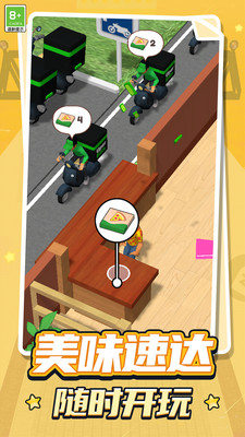 1、通过完成订单、升级设备、解锁新食谱等方式,玩家可逐步扩展业务,将小型快餐店发展为连锁餐饮帝国。