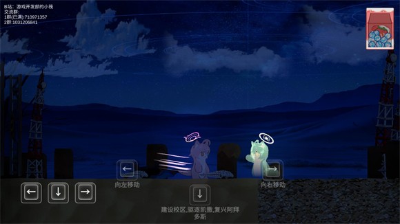 贴合原作的视觉与操作:画面采用和《蔚蓝档案》风格一致的可爱卡通画风,角色的发型、服饰等细节设计精致,校园建筑、花园等场景也绘制得生动逼真。操作上十分简单,左下角按钮可控制角色移动,向下的方向键用于和物品或角色互动,上手难度低,适合慢节奏玩家。