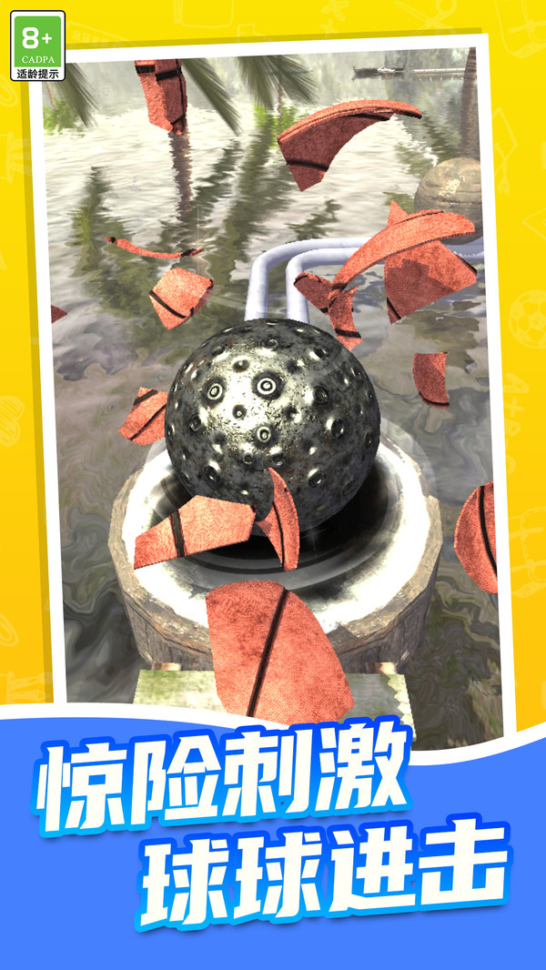 生存躲避球是一款操作简单却超具挑战性的休闲手游!操控大铁球在狭窄轨道上滚动,轨道或悬于高空或架于水池之上,稍有不慎就会掉落。游戏超考验操作技巧,必须把控好滚动速度,超速极易失控。大摆锤、落差悬崖、黑洞等超多刺激陷阱轮番上阵,全程新鲜感拉满不无聊。3D场景逼真立体,拟真物理引擎打造的水面效果,让你沉浸式体验冒险,还有海量好看皮肤随心挑选!