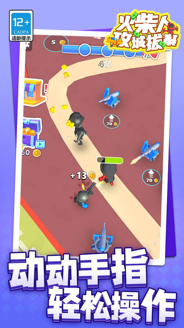 火柴人攻城拔寨是一款热门的塔防射击手游,在这里部署好自己的防线,保卫自己的基地,持续建造各种的武器炮台,在敌人们进攻的道路两侧放置炮台或是士兵,可以看到战斗的酷炫情形,及时的做出调整并增强自己的防御能力!