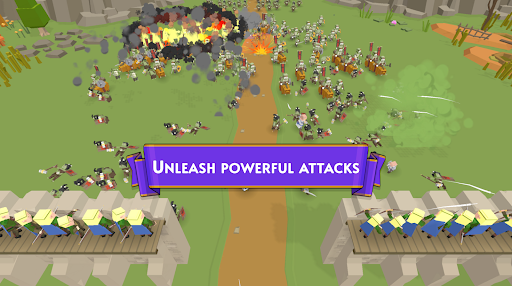 写实 3D 画风与细腻设定:画面以写实笔触还原中世纪风貌,城墙的砖石纹理、骑士铠甲的家族纹章等细节拉满,攻城时城墙崩塌的碎石飞溅、箭矢划过的轨迹等特效,让战场代入感十足。兵种形象辨识度高,己方骑士身披鎏金铠甲,敌方蛮族战士涂有图腾油彩,一眼就能区分兵种属性。