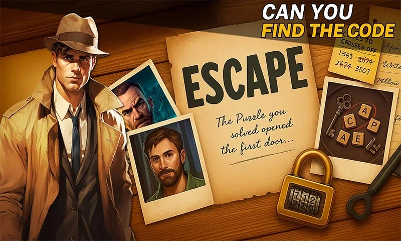 2、逃脱游戏模块如同一部黑色惊悚片,通过不同的房间推进剧情,显示出案件的多重进展。