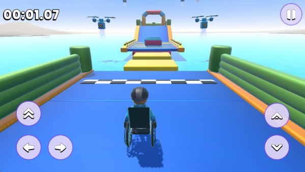 特技与竞速增益:这款游戏不只是简单闯关,还融入了特技玩法。轮椅能完成空中翻转、贴地漂移等动作,成功触发这些特技后会获得速度加成,助力玩家更快突破赛道。此外,游戏内置惯性、摩擦力等物理参数,这些参数会影响轮椅操控,让特技操作和竞速过程更具挑战性。
