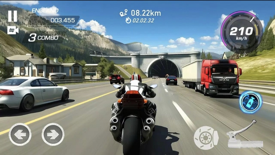 无尽模式:在不间断的车流中尽可能骑行更远。