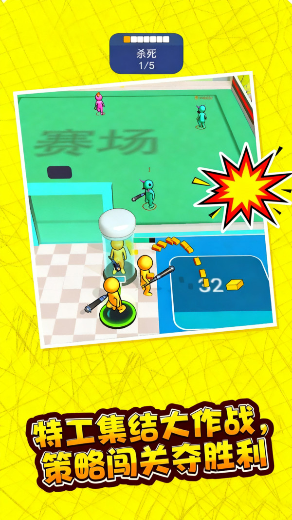 小兵进化争霸是一款快节奏多人乱斗休闲竞技手游,满溢欢乐对抗氛围,邀你加入这场色彩与力量碰撞的热血盛宴!游戏操作便捷易上手,核心玩法趣味十足——击败敌人即可获取金币,用金币招募士兵壮大你的队伍;累积击败一定数量敌人后还能触发进化,让战力实现飞跃,轻松横扫战场。小兵数量直接决定战力强弱,合理规划招募与进化节奏,用策略碾压对手、快速结束战斗,尽享竞技博弈与战力飙升的双重快感,快来加入开启你的争霸之旅!
