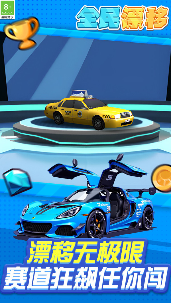1、逼真的赛车模型与细腻的画面效果使得全民漂移成为一款视觉享受的游戏。
