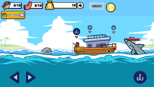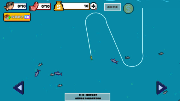 1、游戏的操作上手后非常的简单,游戏中需要操控一位钓鱼人,这个钓鱼人也是可以进行选择的。游戏是全触屏操作,屏幕上会出现不同的操作按钮;