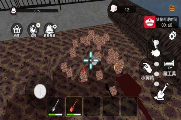 1、使用勺子挖掘地牢,关注狱警巡逻倒计时,在安全时段推进挖掘进度,同时升级背包提升携带能力。