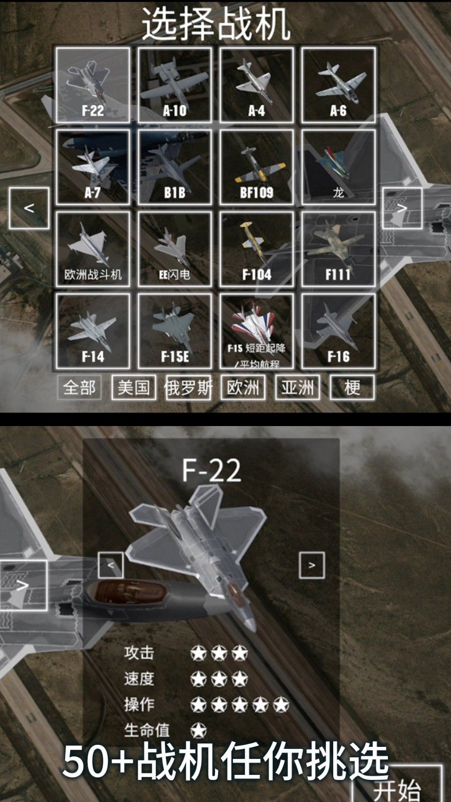 1、收录超50架不同类型喷气式战机,涵盖美、俄、欧、亚多地区机型,满足玩家对战机的多样化选择需求。