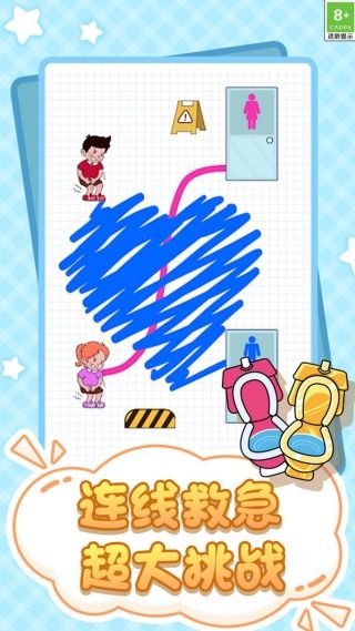 《帮帮大聪明》是一款以画线为主的益智闯关游戏。在这款游戏中,玩家需要运用智慧,通过巧妙的规划来完成连线任务,协助一个急需上厕所的小角色打通障碍,从而在充满挑战的智力游戏中寻找解题的诀窍,享受解题过程中的乐趣。尽管游戏画面设计简约,但操作难度却不小,它要求玩家具备发散性思维和仔细的思考,才能顺利过关。