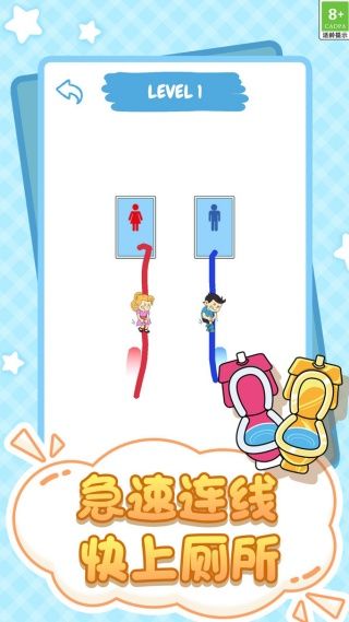 1、以 “紧急上厕所” 为关卡背景,将生活化场景与连线谜题结合,让益智玩法更具代入感与趣味性。