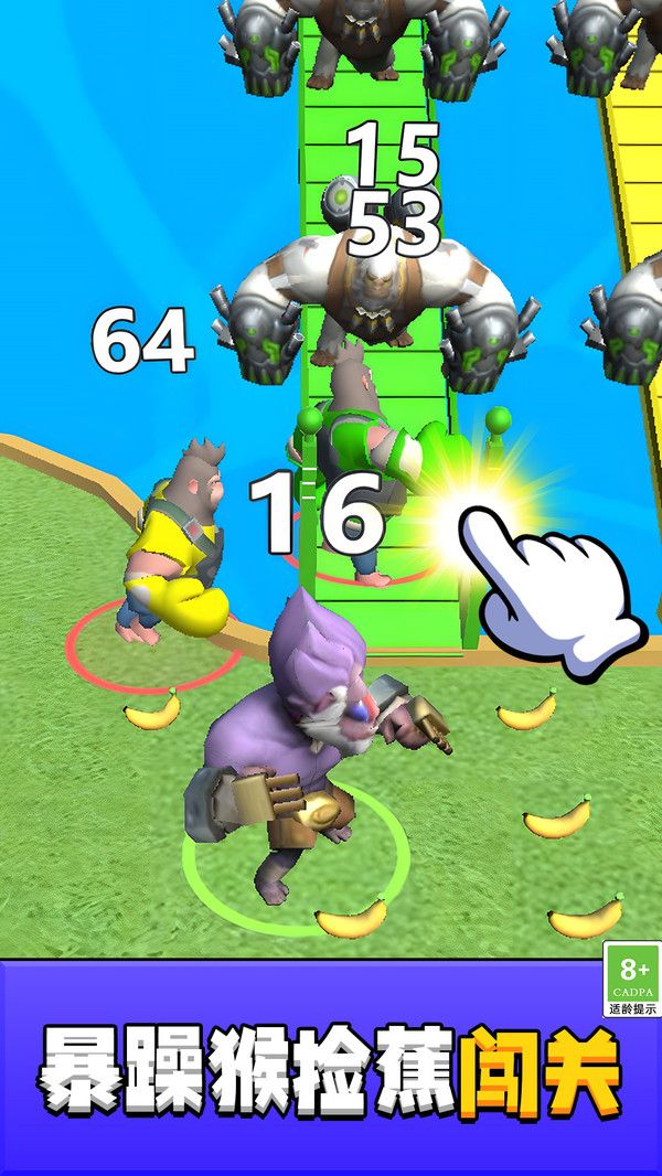 3、游戏节奏紧凑,“猴子赶闯夺香蕉” 的设定让每一关都充满紧迫感,能快速抓住玩家注意力。