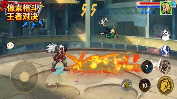 1、采用复古像素画面,兼顾视觉可爱感与技能特效表现,既能唤起怀旧情绪,又能展现格斗的热血感。