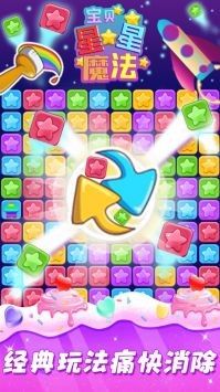 宝贝星星魔法是一款令人愉悦和上瘾的星星消除游戏。其简单直观的操作使得玩家迅速上手,并通过消除相邻的星星来体验愉悦的消除乐趣。多样化的关卡和任务保持了游戏的多样性和挑战性,玩家需要运用策略和技巧来完成不同的目标。特殊道具和技能增加了游戏的趣味性和策略性,让消除过程更加丰富多彩。同时,精美的画面和动听的音效营造出一个迷人的星际世界。解锁新的角色和场景带来成就感和满足感,提供持续的挑战和探索。总体而言,宝贝星星魔法是一款令人愉快且上瘾的消除游戏,适合所有喜爱消除类游戏的玩家。