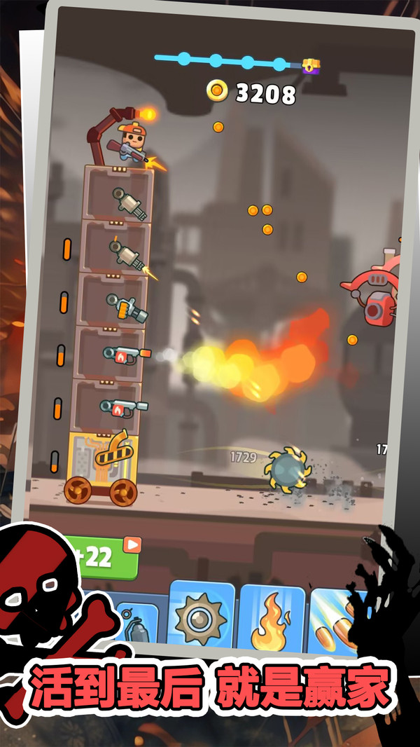 1、打败所有的僵尸以后,就能够升级自己的战车,才能够安全的撤离。