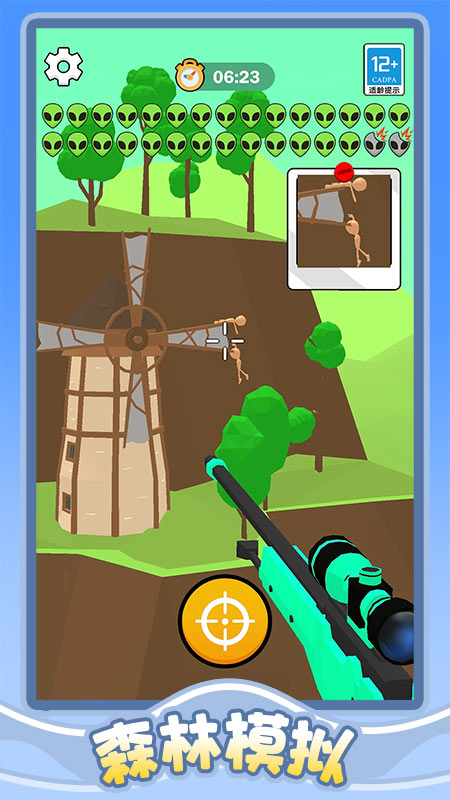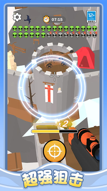 2、点击屏幕完成射击,命中外星人即可推进关卡进度,部分关卡需注意命中要害,避免惊动目标导致挑战难度增加。